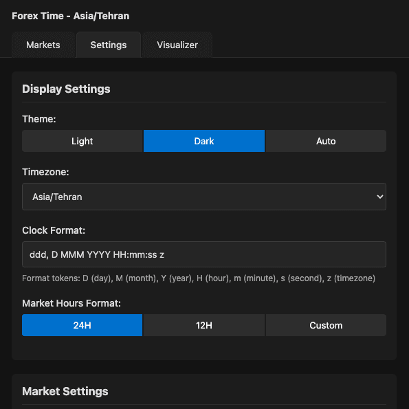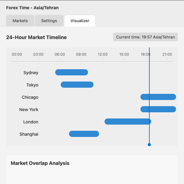 نمایش همه ساعات بازار در تایمزون انتخابی شما